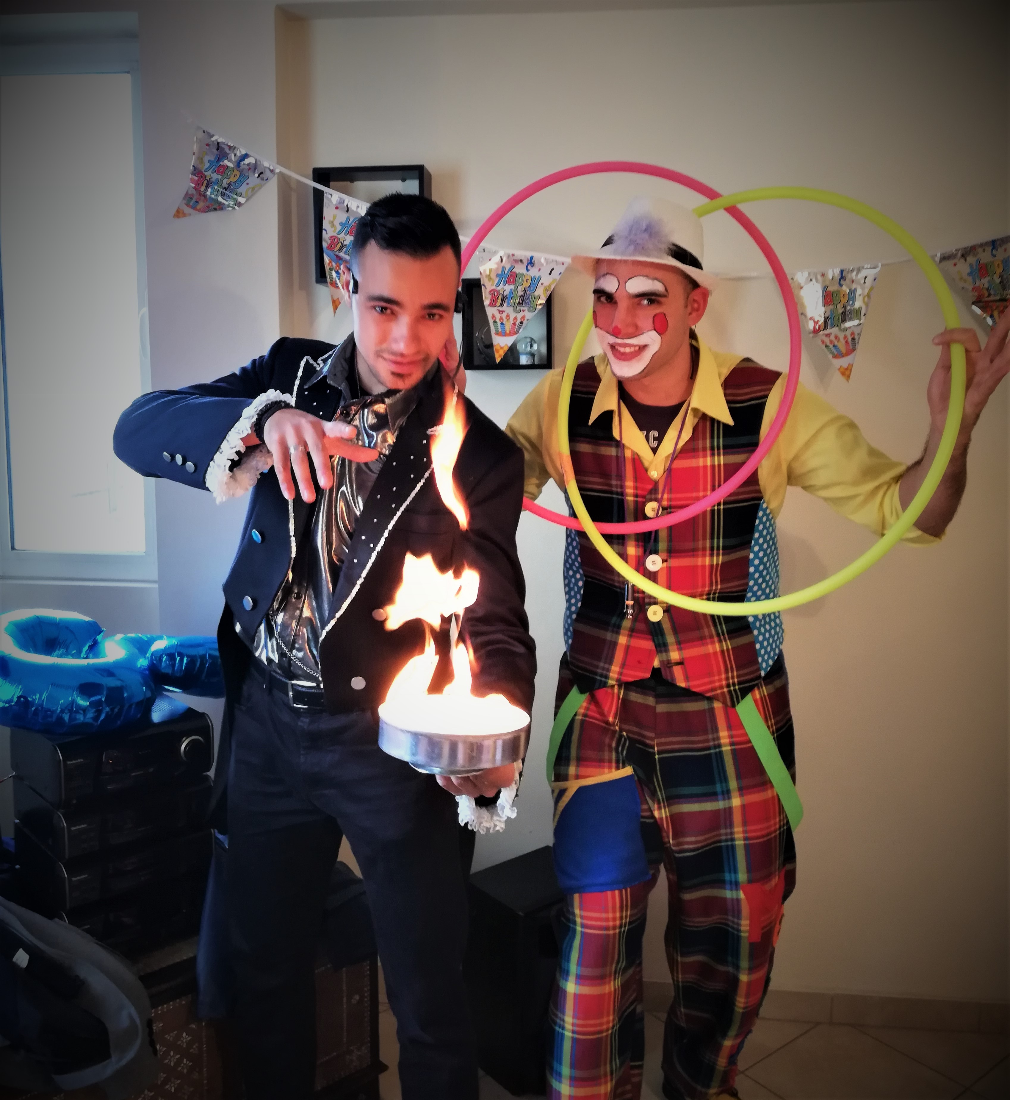 Το πρόγραμμα είναι συνδυαστικό από δυο καλλιτέχνες. Ένας από τους καλύτερους επαγγελματίες Μάγους της Ελλάδας θα αφήσει άφωνους μικρούς και μεγάλους με τα δύσκολα και εντυπωσιακά Μαγικά του κόλπα και ο Κλόουν θα τους κάνει να γελάνε μέχρι τελικής πτώσης.